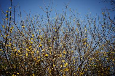曲徑通幽、暗香浮動。走在臘梅叢中,微風(fēng)拂過,花瓣雨就下個不停,惹一身的花香回家,豈不樂哉。