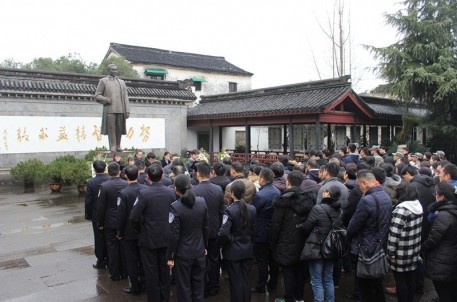 1月8日是周恩來總理逝世42周年紀念日,為積極響應習總書記的批示——“學習周恩來同志的優(yōu)良作風和優(yōu)秀品德”,紹興市名人故居管理處、市周恩來研究會、中共紹興市排水管理有限公司委員會、杭州鐵路公安處紹興站派出所黨支部、浙江越秀外國語學院東語學院周恩來班的黨員、同學、職工們,在紹興周恩來紀念館舉行紀念活動。人們向總理銅像鞠躬、進獻花籃,寄托哀思。