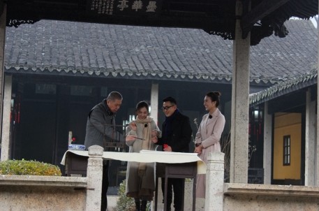 在如此典雅的文化圣境,劇組的拍攝思路自然離不開文人偏愛的“詩、酒、茶”元素。因此,第一個(gè)景便選在蘭亭茶室內(nèi)。嘉賓們看著窗外的江南煙雨,沏上一壺暖茶,在茶香之中看綠葉浮沉悟筆墨道理。而最耐人尋味的便是節(jié)目錄制最后,嘉賓們置身于墨華亭,溫上一壺紹興老酒品讀文化的精致肌理。嘉賓們還在古樸深沉的王右軍祠中研磨書寫的魅力;置身曲水流觴,參與1600多年前的雅集盛會(huì),飲酒賦詩,好不詩情畫意。