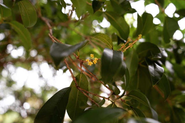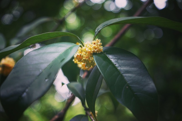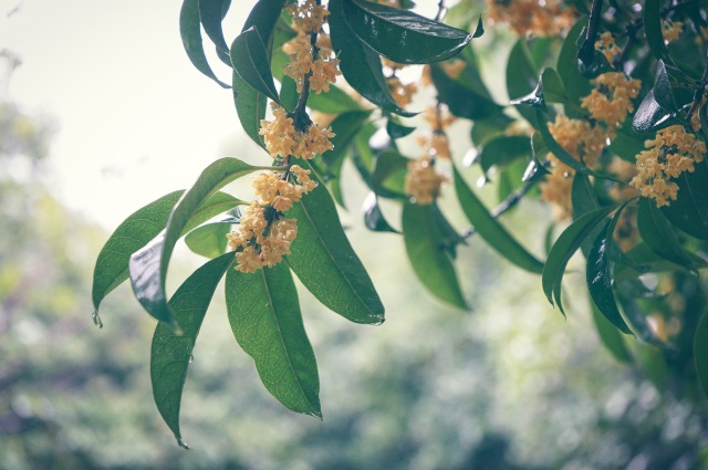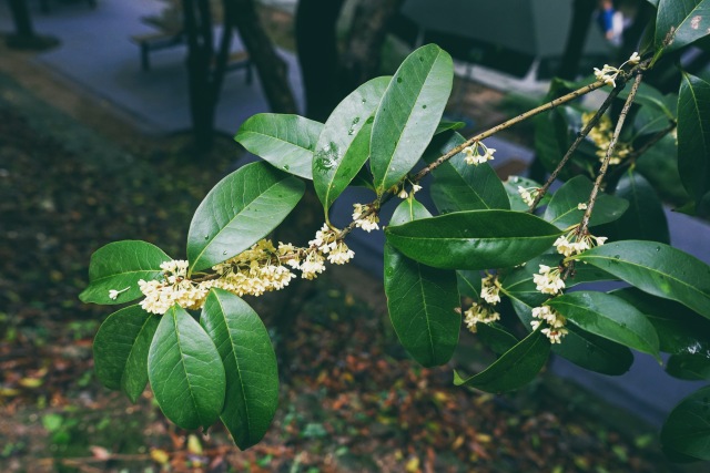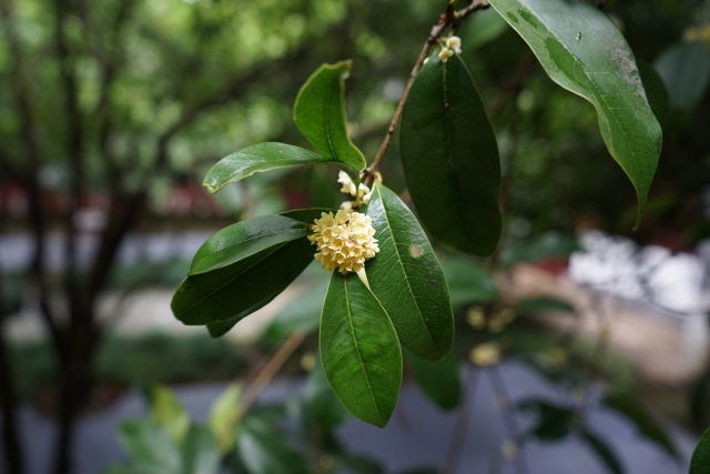 景區(qū)內(nèi)開(kāi)得較早的是銀桂,銀桂的花色并不嬌艷,但體態(tài)輕盈。于幽靜之處, 不惹人注意,只留給人香味。