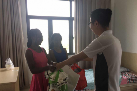 8月11日上午,市旅投公司商業(yè)演藝部代表宋銓、茅亦丹兩人將同事們收集的一些衣物捐贈(zèng)給來(lái)自烏干達(dá)的演員。兩位烏干達(dá)演員接過(guò)衣物后,用著并不標(biāo)準(zhǔn)的中文,連聲說(shuō)著謝謝!謝謝!