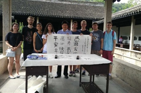 美國塔夫茨大學(xué)與蘭亭景區(qū)合作舉辦“美國留學(xué)生秋季書法短訓(xùn)班”,自2004年開課至今已有13個年頭了。帶隊的楊杰博士年年都來,對蘭亭已有非常深厚的情誼。他表示:“每年來紹興,總是那么的熟悉親切,雖然只有短短幾天,但這座城市的人文歷史和文化底蘊(yùn),讓同學(xué)們依依不舍。最讓他們印象深刻的,莫過于在蘭亭上這堂內(nèi)容豐富、形式獨(dú)特的書法課,特別是他們拿到結(jié)業(yè)證書時,喜悅溢于言表?!?br />