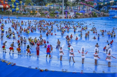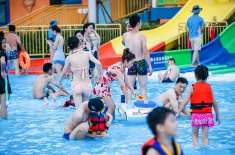 以海洋為主題的鏡湖樂園夢幻水世界,其建筑風(fēng)格是蔚藍(lán)色,有大王椰樹巨陣。藍(lán)天、碧水,陣陣?yán)嘶ㄈ缤蠛?。紹興人不用出遠(yuǎn)門,就可有走到大海邊的感覺。這里的水上樂園游樂設(shè)施有35條滑道,有造浪池和漂流河等8大游樂項目,其游樂設(shè)施和水質(zhì)處理設(shè)備是世界先進水平,人們來此游樂,感到安全、刺激、舒適。越來越多的市民認(rèn)可了鏡湖樂園的夢幻水世界,樂意來到這里嬉水、玩水,享受碧綠和清涼。