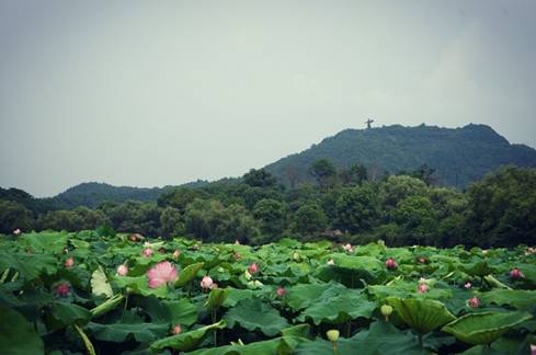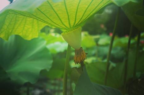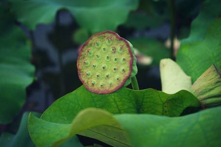 幾處荷花凋謝之后變成了清新的蓮蓬。