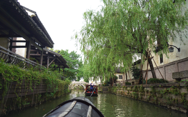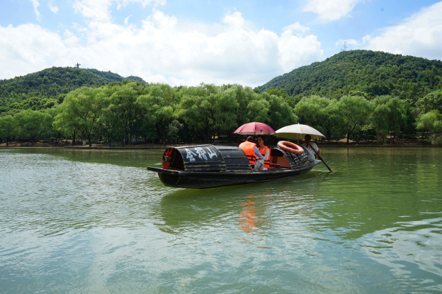 乘著會(huì)稽烏篷感受清風(fēng)徐徐,映入眼簾的是一幅綠意盎然的水墨畫,清新而淡雅,綿柔而悠長(zhǎng)。
