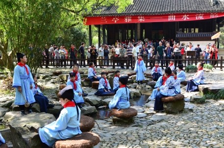 蘭亭鎮(zhèn)中心小學(xué)毗鄰蘭亭景區(qū),以蘭亭文化為依托。學(xué)校最具特色的兩個社團:“羲之小導(dǎo)游社團”和“少兒流觴書畫社”已有30多年的建成歷史。此次活動的主題“育惠和傳人”也是引自于王羲之《蘭亭集序》中的“天朗氣清 惠風和暢”?;?,仁也,古又同“慧”,指聰明;和,指和美,也代表團結(jié)。學(xué)校希望通過此類活動的開展,培養(yǎng)青少年們的團結(jié)協(xié)作能力,語言表達與交流能力,將中國優(yōu)秀的傳統(tǒng)文化傳承發(fā)揚下去。