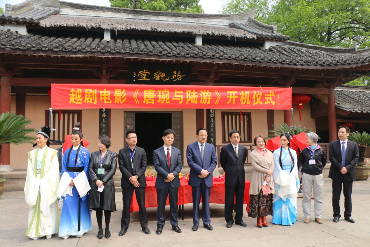 4月12日上午,由紹興越劇藝術發(fā)展有限公司、浙江和通影視文化股份有限公司主辦的越劇電影《唐琬與陸游》開機儀式在沈園景區(qū)務觀堂前廣場舉行。