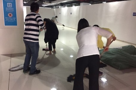 為保證2017年運營季水公園順利開園,市旅投公司運營部投入緊鑼密鼓的準備工作。為了不影響室外清掃和滑道清洗的工作進度,因前期雨天天氣,所以計劃先完成室內的清潔工作;清明節(jié)后,運營部全體同事便開始清掃男女更淋區(qū),并鋪設防滑毯。