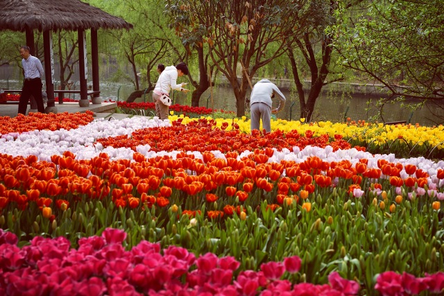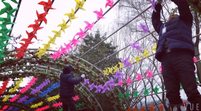 景區(qū)工作人員不辭辛勞地布置場(chǎng)地,折成千上萬(wàn)的風(fēng)車(chē),冷風(fēng)中高空掛燈籠,熏難聞的油漆...只為了給廣大游客營(yíng)造一個(gè)豐富多彩的游覽環(huán)境,打造萬(wàn)紫千紅的觀賞美景。