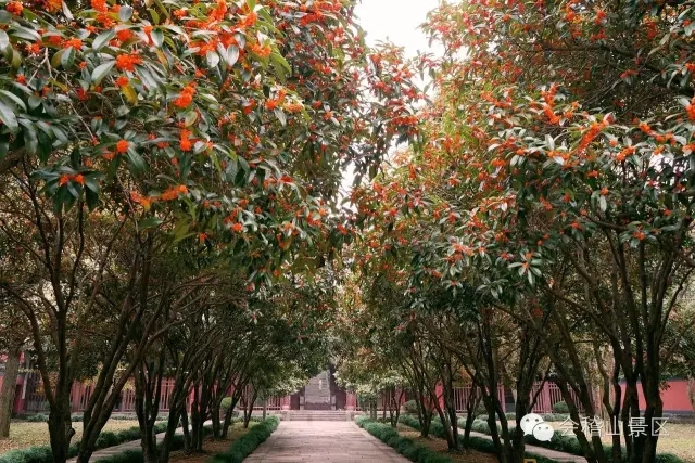 除了滿眼的秋色,空氣中彌漫著一股淡淡的清香味,清新而悠遠。桂花林里一排排的桂花樹,點點金黃散落于桂花大道,暗香浮動,意境清幽,是賞桂的絕佳之地。