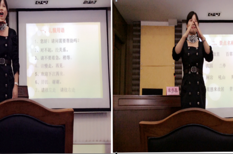 通過這次培訓(xùn),我們不單單是學(xué)會(huì)了一種無聲的語言,還使我們對一些情感、一些事物有了全新的認(rèn)識和感受,更為今后給聾啞游客提供更好的服務(wù)打下了扎實(shí)的基礎(chǔ)!