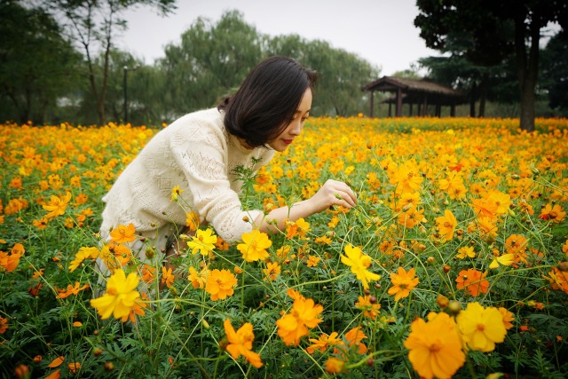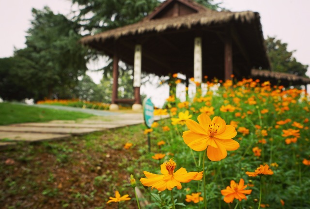 秋季的花卉園,雖少了郁金香的艷麗,然遍地的硫華菊,一片接一片的金黃,讓整個秋在花卉園盡情的綻放!