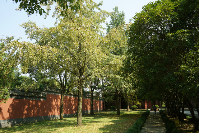 滿樹金黃的銀杏葉有很多飄落下來,散了一地,帶著浪漫的氣息,寧靜安詳。