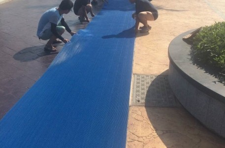 為防止游客在樂園內(nèi)滑倒受傷,運營部同事在高溫天氣里仍舊頂著烈日,將樂園主要道路地面的防滑毯鋪設完成。時間緊迫,要完善的方面還有許多,運營同事加班加點、毫無怨言,只為夢幻水世界能夠順利運營,為旅投公司創(chuàng)造樂園品牌打響第一槍!