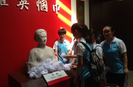 7月18日上午, 長(zhǎng)城中學(xué)十余名學(xué)生來秋瑾故居開展暑期活動(dòng),同學(xué)們通過獻(xiàn)小白花,聽講解等方式,學(xué)習(xí)秋烈士的生平事跡。
