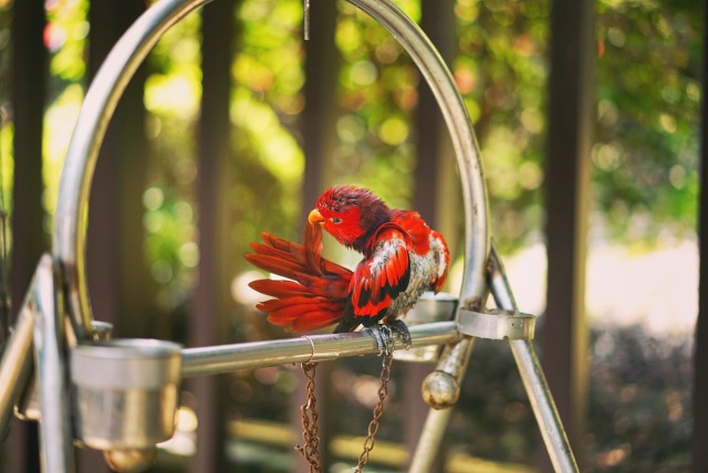 個頭小巧的“紅吸蜜鸚鵡”一直擺著不同pose,想引起你的注意。