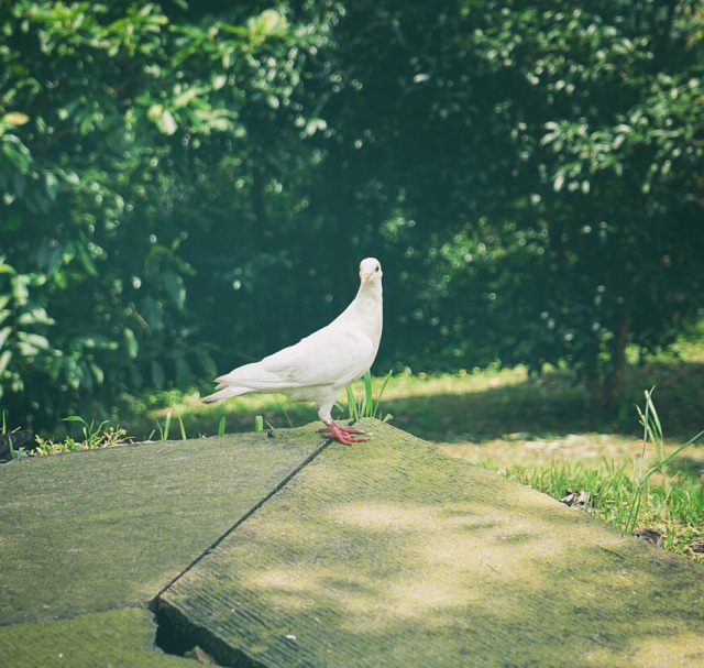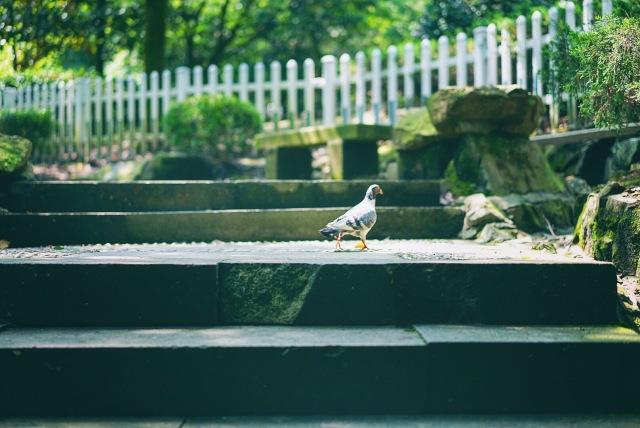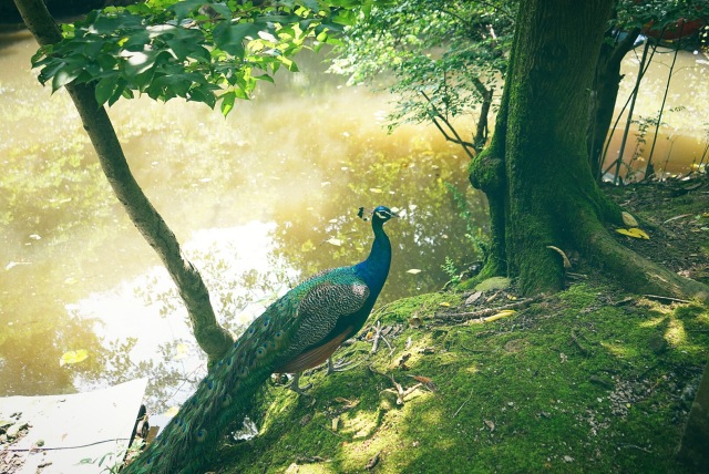 跟著這只閑庭信步的鴿子拾級而上,看到了在小湖邊覺得自己美美噠的“孔雀”。