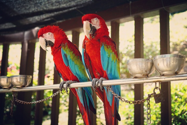 瞧這色彩艷麗的“紅綠金剛鸚鵡”,喜歡成對活動的它們可是景區(qū)的小明星,宣傳海報上都有它們的身影。雖然長著有力的喙,但對人絕對友善。