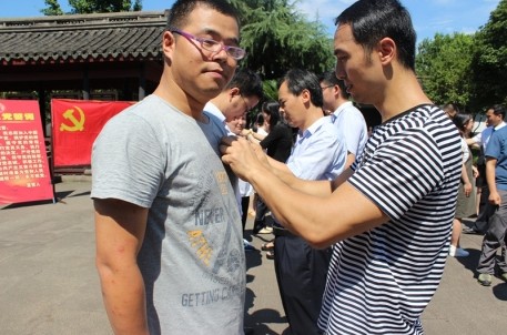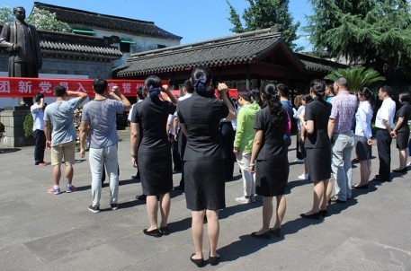 黨員同志們首先在講解員的帶領(lǐng)下參觀了周恩來紀(jì)念館,回憶黨史,學(xué)習(xí)總理的精神風(fēng)范,參觀結(jié)束后在總理紀(jì)念館廣場舉行簡單而又莊重的宣誓儀式。新黨員代表向總理銅像進(jìn)獻(xiàn)花籃,新老黨員在領(lǐng)誓人帶領(lǐng)下,誦讀入黨誓詞,“我志愿加入中國共產(chǎn)黨,擁護(hù)黨的綱領(lǐng)……隨時準(zhǔn)備為黨和人民犧牲一切,永不叛黨?!毙吕宵h員們面向黨旗,莊嚴(yán)地舉起自己的右手誓言,表達(dá)自己對黨和國家的忠誠。