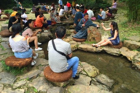 “跟著課本游紹興”,業(yè)已成為紹興暑期旅游市場的明星品牌。來賓們一行踏著魯迅先生童年足跡,在三味書屋內(nèi),感受舊時私塾文化,妙哉,樂哉。在書法圣地——蘭亭,來賓們一行對景區(qū)茂林修竹的優(yōu)美環(huán)境、濃厚的書法氛圍予以肯定。對于傳統(tǒng)活動——曲水流觴,更是躍躍欲試。通過參與敬香、行禮、觀看修禊舞、香薰灑身、流觴曲水、飲酒作詩等環(huán)節(jié),讓廣大游客切身感受1600多年前雅集之樂。蘭亭書法研修游的關(guān)鍵就是“體驗”,在書法博物館培訓(xùn)室里,來賓們紛紛試手,體驗宣紙碑拓、扇面描紅技藝,感受中國書法藝術(shù)的精妙?;顒又啵€趁興到《蘭亭的故事》品牌店,購買文創(chuàng)產(chǎn)品。來賓們對店內(nèi)既具有當(dāng)?shù)匚幕厣謱嵱玫膭?chuàng)意產(chǎn)品顯示出了極大的興趣。一致表示,要多買一些回家送給親友。