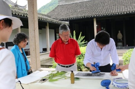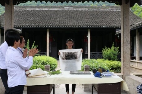 在第40個(gè)國(guó)際博物館來(lái)臨之際,我館特推出尋葉拓畫(huà)——讓文字和圖畫(huà)來(lái)一場(chǎng)“古今結(jié)合”的活動(dòng)。整個(gè)活動(dòng)在右軍祠墨華亭內(nèi)舉行,游客在館外尋找散落的樹(shù)葉和花瓣,通過(guò)對(duì)不同葉形的觀察和組合,利用葉形的原始狀態(tài)進(jìn)行創(chuàng)造,拼湊成特別的文字和圖畫(huà),利用古代印刷技術(shù),拓印到宣紙上。在拓印的過(guò)程中引來(lái)了不少游客的圍觀,有年近花甲的老人,有玩鬧的小朋友。不少游客還親自動(dòng)手進(jìn)行拓印。