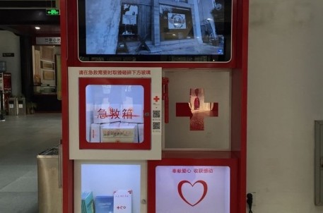 這個(gè)集宣傳募捐為一體的”紅十字募捐箱”,以紅白相間為底色(與紅十字會(huì)LOGO顏色相相襲),擺放于景區(qū)游客中心醒目位置,可有效地將其實(shí)用功能發(fā)揮極致。募捐箱主要有視頻宣傳、募捐箱、宣傳箱(用于擺放紅十字會(huì)宣傳資料)、急救包、急救毯和急救箱組成。急救箱內(nèi)配置了人流密集場(chǎng)所常用的急救物品,如卡扣式止血帶、繃帶、紗布、急救毯、創(chuàng)可貼等物品。游客若在景區(qū)(飯店)不慎擦傷流血或出現(xiàn)其他突發(fā)狀況,可有效地初步救護(hù),為下一步救治贏得寶貴時(shí)間。