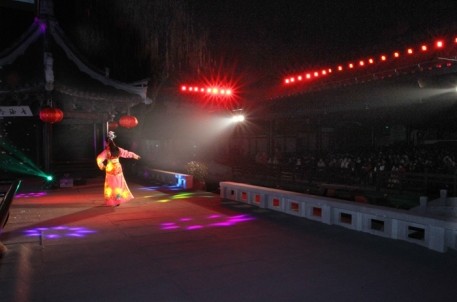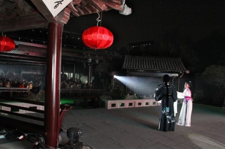 沈園之夜堂會(huì)節(jié)目自2008年開演以來,憑借新穎的文化創(chuàng)意,古今合璧的節(jié)目內(nèi)容,詼諧幽默的說學(xué)逗唱,受到市場(chǎng)追捧,逐漸發(fā)展成為紹興夜游的一個(gè)旅游品牌,填補(bǔ)了紹興城市晚間休閑夜游的空白。2013年,沈園之夜全年接待游客8萬余人次,合計(jì)上演近400場(chǎng),景區(qū)雖在周末及黃金周期間每晚加場(chǎng)加演,卻仍出現(xiàn)一票難求的火爆場(chǎng)面。為滿足市場(chǎng)需求,緩解景區(qū)接待壓力,醞釀中的南苑新劇場(chǎng)于今年10月開土動(dòng)工,沈園景區(qū)在原南苑舞臺(tái)的基礎(chǔ)上,遵循《沈園情》堂會(huì)的節(jié)目風(fēng)格,重新設(shè)計(jì)建造了一個(gè)既古樸又現(xiàn)代的大型劇場(chǎng),此次新投入使用的南苑新劇場(chǎng)面積達(dá)兩千平米 ,共設(shè)有貴賓席和普通觀眾席500座。
