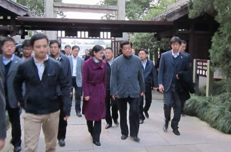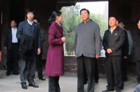 2013年12月3日,原中央政治局常委、十一屆全國政協(xié)主席賈慶林在浙江省委書記夏寶龍、紹興市委書記錢建民等領導的陪同下,參觀了大禹陵。 登上告成橋,首長對大禹陵絢麗多姿的山水風光頗為贊賞,與陪同人員合影留念。 拾級而上,沿“大禹陵”碑、岣嶁碑及禹廟等景點,首長一邊參觀,一邊認真聆聽了講解員的解說。并在岣嶁碑駐足良久,對碑文及其歷史十分感興趣,還提議好好研究這塊碑。