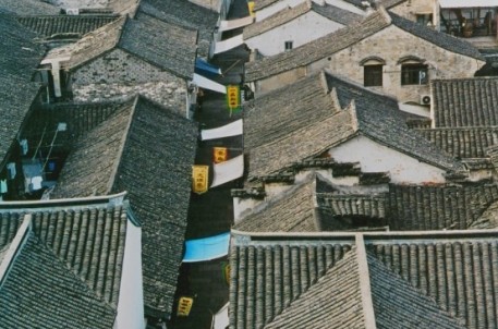 老街其實是紹興城內(nèi)的一處街市民居,這里的建筑基本都原汁原味的保存著清末民初的風(fēng)韻。街長1.5公里,其寬也不過數(shù)尺,兩邊住家參差錯落,小街兩側(cè)酒肆茶樓旗幡招展。戶戶臨水,家家枕河。老街更是背山臨水盡得天然造化,在與直街并行的右側(cè),是一條長長的古河,河的兩岸就是粉墻黛瓦的民居,每家都修有通到河邊的石階,紹興人稱之為“河埠頭”,這是供人們到河邊洗菜洗衣,如有船只??浚部蓮倪@里上岸。粉墻玄瓦,倒映于水中,共同營造出一種深邃靜謐的意境。間或有小巧的烏篷船劃破水面,帶給你江南水鄉(xiāng)的獨特韻味,那么歷久和清新,令人沉醉,難以釋懷。人稱它為“東方威尼斯”,并不夸張,如果把威尼斯比作一幅油畫,這里則是一幅淡雅的水墨畫。小橋流水人家真正是紹興城內(nèi)的的一道風(fēng)景。