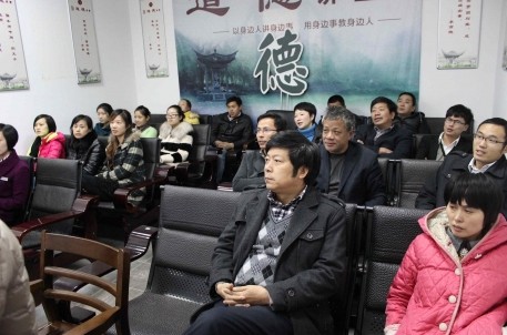 為響應(yīng)黨的政策號(hào)召、主動(dòng)適應(yīng)新時(shí)期形勢的發(fā)展變化、大力弘揚(yáng)中華民族道德力量,2013年11月27日蘭亭景區(qū)舉行了第6期“道德講堂”之職業(yè)道德宣講會(huì),景區(qū)領(lǐng)導(dǎo)和在崗員工20余人參加活動(dòng)。