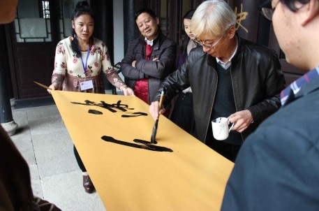琴、棋、書、畫、詩、酒、茶,是文人最向往的完美生活。此次活動(dòng)中,來賓們不僅棋局對弈,展現(xiàn)出了專業(yè)選手的精湛棋藝,還品酒飲茶,賞 書看畫,揮毫創(chuàng)作,盡顯灑脫?;顒?dòng)開始前,各位來賓還在右軍祠舉行了隆重的晉圣儀式,以此感念書圣王羲之的藝術(shù)高度。