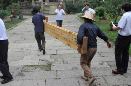 蘭亭地處低洼,每年夏秋兩季受暴雨臺(tái)風(fēng)等惡劣天氣影響,景區(qū)都會(huì)遭受不同程度的洪水侵襲,抗洪防澇工作任務(wù)非常重。為了提高實(shí)際防抗能力,確保我景區(qū)在特殊情況下能在最短時(shí)間內(nèi)充分發(fā)揮安全保障機(jī)制作用,實(shí)現(xiàn)快速、高效、有序地?fù)岆U(xiǎn)救援工作,本次演練以持續(xù)暴雨蘭亭突發(fā)水患為背景,景區(qū)先后按三級(jí)、二級(jí)、一級(jí)三個(gè)等級(jí)的汛情啟動(dòng)相應(yīng)等級(jí)的防澇預(yù)案。隨著防汛等級(jí)的提升,每位員工都要展開不同程度的現(xiàn)場模擬救援行動(dòng)。在景區(qū)領(lǐng)導(dǎo)的指揮下,由相應(yīng)部室和員工組成的搶險(xiǎn)救災(zāi)組、后勤保障組、游客安全組按信息報(bào)告、安全疏散、財(cái)物轉(zhuǎn)移、人員搶救、現(xiàn)場抗洪等步驟有序開展了演練,并設(shè)計(jì)了疏散人員、營救被困游客等情景模擬環(huán)節(jié),吸引了不少游客駐足觀摩。