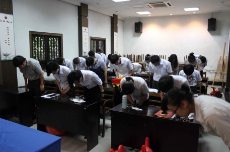 “感恩的心,感謝有你……”嘹亮的歌聲從蘭亭景區(qū)的報(bào)告廳中傳出。這是蘭亭景區(qū)正在進(jìn)行道德講堂的第二講——職業(yè)道德。