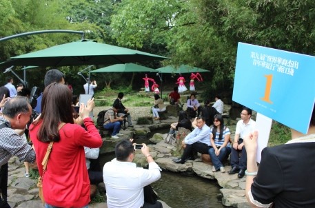5月31日下午,由國(guó)務(wù)院僑務(wù)辦公室主辦,以“綻放青春光彩?共圓共享中華夢(mèng)想”為主題的第九屆世界華裔杰出青年華夏行活動(dòng)走進(jìn)了古城紹興,走進(jìn)了書法圣地蘭亭。90多位華裔杰出青年參觀景區(qū),體驗(yàn)書法,還興致勃勃地參與了景區(qū)特意安排的仿古曲水流觴演藝活動(dòng),用不甚流利的中文創(chuàng)作打油詩(shī),現(xiàn)場(chǎng)氣氛活潑熱烈。