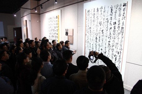 4月25日下午,浙江省書法家協(xié)會2013年書法篆刻創(chuàng)作骨干研修班的近百名學員,在老師的帶領下來紹興博物館觀摩“中國書法蘭亭獎”獲獎作品展。據(jù)悉,此次現(xiàn)場課是浙江省書法家協(xié)會為本期研修班特別安排的,旨在通過現(xiàn)場近距離感受全國書法名家高手們的作品,讓學員們對書法藝術(shù)有更真切直觀的感悟。