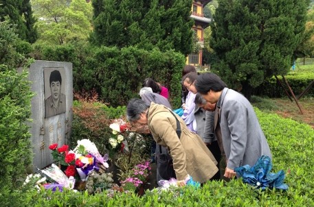 4月6日一早,居住在上海的蔡元培兒媳楊心月女士來到紹興,在紹興市名人故居管理處和諸暨陳蔡村蔡氏宗親會(huì)人員的陪同下,一行十余人來到會(huì)稽山天福園公墓為蔡元培的兒子蔡懷新和孫子蔡朝暉掃墓。蔡懷新由蔡元培第三任夫人周峻女士所生,退休前是復(fù)旦大學(xué)物理系教授,著有《基礎(chǔ)物理學(xué)》等書,去世后長眠紹興。