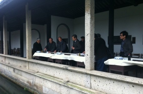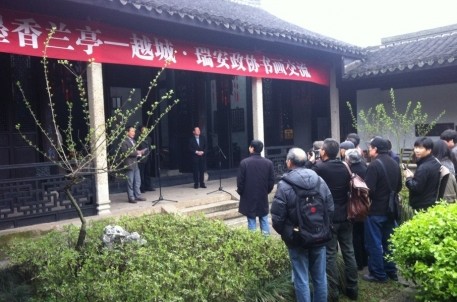 活動首先進行了一個小的開幕儀式。儀式上,越城區(qū)政協(xié)主席、黨組書記陳大平回顧了2012年在瑞安舉行書畫交流活動的場景,并對瑞安市政協(xié)主席白一帆一行來紹興蘭亭參加活動表示了熱烈歡迎。瑞安市政協(xié)白主席也隨后致辭,并表達了來書法圣地參加活動的高興之情。