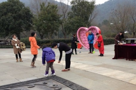 2013年新春佳節(jié),會稽山景區(qū)為游客奉上了以“健身、休閑、祈福、衲祥”為主題的活動大餐。大年初一至初六期間,祭禹廣場熱鬧喜慶,廣場分為三個區(qū),健康祈福區(qū)、趣味運(yùn)動區(qū)和休閑美食區(qū)。“鐘聲納祥”、卡片祈?!岸技耐辛巳藗儩M滿的祝福和來年的愿望。休閑運(yùn)動區(qū),這里既可欣賞絕妙技藝的“斗空竹”民間表演,又可體驗妙趣橫生的童玩游戲,游客們大大小小、老老少少一起抖空竹、滾鐵環(huán)、斗陀螺、玩跳繩、踢足球、投籃球,個個爭先恐后,玩得不亦樂乎!廣場里處處都是歡聲笑語,一片歡樂祥和的氣氛。游玩之余,美食區(qū)飄來的陣陣香味早已讓人饞得垂涎三尺,一家人坐在休息椅上享受著暖暖的太陽,品味著各種美食帶來的味覺享受,其樂融融,別有一番滋味!