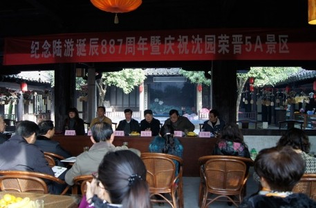12月5日,紀念陸游誕辰887周年暨慶祝沈園景區(qū)榮晉5A景區(qū)座談會在沈園雙桂堂舉行,會長高利華、常務副會長來家炯、王致涌、副會長黃錫云、顧問錢茂竹、名譽會長章生建等陸游研究會理事會成員及廣大會員出席了座談會,縣文聯(lián)主席、副會長黃錫云主持了座談會。會議宣布了第五屆理事會成員名單。會上,沈園景區(qū)管理處主任、常務副會長來家炯發(fā)表了沈園榮晉5A景區(qū)感言,回顧了沈園景區(qū)在5A創(chuàng)建與陸游文化研究、傳承、發(fā)揚等方面所取得的成績。隨后,會長高利華教授總結(jié)了陸游研究會第四屆理事會的主要工作,提出了下階段的工作計劃,包括一次會議:明年在四川舉行的紀念陸游誕辰888周年暨陸游與西蜀文化國際研討會;一個網(wǎng)站:陸游研究會網(wǎng)站;一個講堂:配合做好《社科大講堂》的講座和宣傳;一次參謀:陸游紀念館、陸游故里的參謀推動,為傳承弘揚陸游文化做出新的貢獻。