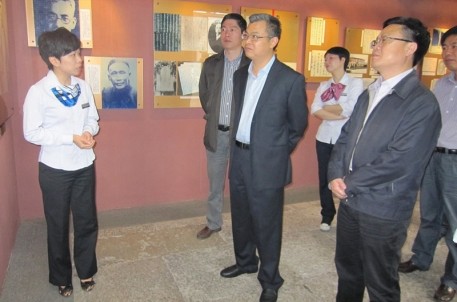 10月25日下午,浙江省監(jiān)察廳副廳長葉懷貫在市委常委、市紀委書記傅祖民和紹興市旅游集團有限公司董事長沈安龍的陪同下參觀了蔡元培故居。(名人故居 陶潔)