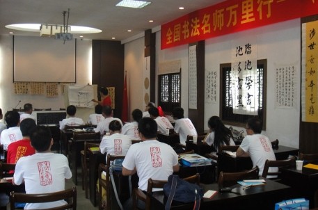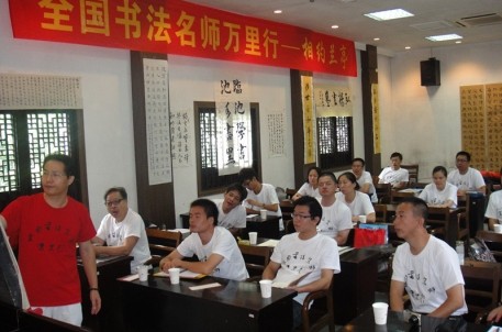 以展示全國書法名師風(fēng)采,拓寬藝術(shù)視野,打造書法教育高端品牌為目的的“全國書法名師萬里行”活動8月26日在蘭亭景區(qū)舉行。35名來自全國各地,從事中小學(xué)書法藝術(shù)教育教學(xué)工作的培訓(xùn)老師相聚蘭亭,以“結(jié)翰墨緣,興雅集事,行萬里路,樹百年人”為宗旨,開展了以如何更好地做好未成年人的書法教學(xué)工作和如何更好地向大眾傳播、推廣書法藝術(shù)為內(nèi)容的主題研討,并現(xiàn)場創(chuàng)作,切磋交流了書藝?;顒咏Y(jié)束以后,老師們還參觀了蘭亭景區(qū)和蘭亭書法學(xué)院。