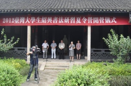 8月23日上午,2012年臺灣大學(xué)生紹興市書法研習(xí)夏令營在蘭亭景區(qū)王右軍祠開營。參加開營儀式的有國臺辦、省臺辦、市臺辦、蘭亭書法學(xué)院領(lǐng)導(dǎo)和來臺灣大學(xué)生、紹興文理學(xué)院大學(xué)生等。在開營儀式上,市臺辦領(lǐng)導(dǎo)致歡迎詞,書法學(xué)院領(lǐng)導(dǎo)授夏令營營旗,學(xué)生代表講話。開營儀式結(jié)束后,臺灣大學(xué)生饒有興趣的參加了景區(qū)為其精心準(zhǔn)備的曲水流觴和臨池十八缸學(xué)書活動。在曲水流觴處,兩岸學(xué)子紛紛飲酒作詩、唱歌,氣氛活躍,充分展示了當(dāng)代大學(xué)生多才多藝的風(fēng)采。在臨池十八缸處,學(xué)生們拿起毛筆金磚習(xí)字,領(lǐng)悟“吾兒練盡三缸水,唯有一點像羲之”的典故內(nèi)涵。