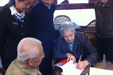 2012年4月21日,衛(wèi)生部原副部長顧英奇、夫人許奉生一行5人,在市衛(wèi)生局局長馬國燦等的陪同下參觀考察了周恩來紀(jì)念館。顧英奇、許奉生原曾長期從事黨和國家領(lǐng)導(dǎo)人的醫(yī)療保健工作,對共和國第一代領(lǐng)導(dǎo)人有著深厚的感情。最近幾年,兩位老人從親歷者的角度,撰寫了《瀛洲紀(jì)事——保健醫(yī)生的中南海印象》一書,講述了老一輩無產(chǎn)階級革命家周恩來、劉少奇、朱德等同志的高風(fēng)亮節(jié)和感人事跡。這次來紹,兩位老人將該書贈送給周恩來紀(jì)念館惠存。(名人故居 壽巧燕)