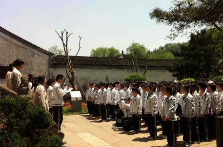 4月26日上午,上海位育中學專門組織高二年段的全體師生來蘭亭景區(qū)開展社會實踐活動,學習《蘭亭集序》,感受書法魅力。御碑亭前,20位身著書童服的學生代表帶領400余名同學集體朗誦《蘭亭集序》,抒發(fā)感概,感悟人生。之后,全體師生體驗仿古曲水流觴活動,感受1600多年前的流觴雅事。