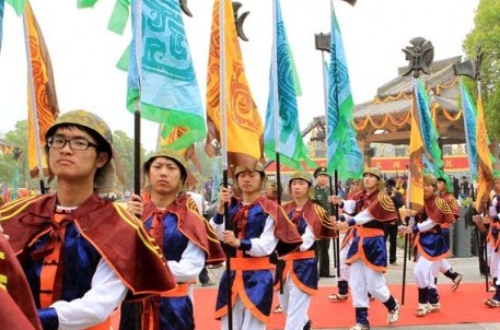 今年的參祭方陣中,首次出現(xiàn)了6個(gè)縣(市、區(qū))集體邀請的越商方陣以及外來建設(shè)者方陣,使祭典在莊嚴(yán)隆重的形式感之外,更增添強(qiáng)烈的現(xiàn)實(shí)意義。