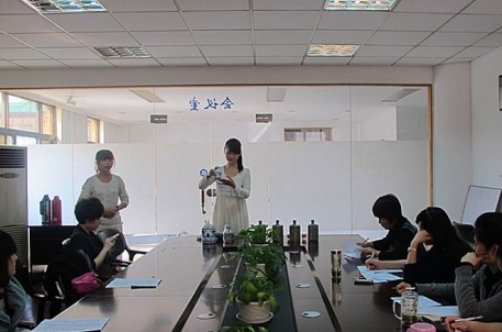 為創(chuàng)新接待方式,接待部近期為講解員開設(shè)酒道、越劇等學(xué)習(xí)課程,并于3月28日下午在公司會(huì)議室進(jìn)行了酒道表演考評(píng)。本次考評(píng)主要從講解員的表演動(dòng)作、表情肢體、講解內(nèi)容、語(yǔ)音語(yǔ)調(diào)等方面進(jìn)行綜合打分,考評(píng)分?jǐn)?shù)當(dāng)場(chǎng)公布,副總經(jīng)理鄭曉蕓就表演和講解作了綜合點(diǎn)評(píng)。公司將對(duì)講解員所有的學(xué)習(xí)課程進(jìn)行考評(píng),考評(píng)成績(jī)將作為年終考核的依據(jù)。