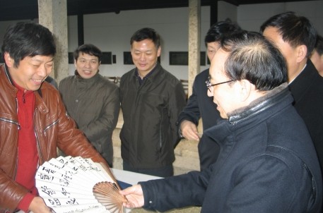 雖然事先安排的參觀行程只有20多分鐘,但董書記非常喜歡蘭亭,細細欣賞,還與其他領導一起參與曲水流觴,品嘗黃酒,合影留念,足足停留了40分鐘。董書記曾在紹興任官五年,先后擔任過副市長、市委副書記、市長和市委書記等職。他表示,雖然離開紹興多年,但對這里的一切都非常熟悉,感情深厚。最后,景區(qū)副主任、紹興知名書法家喻革良向董書記贈送了現(xiàn)場揮毫的書法扇。離開時,董書記表示,以后有機會還會?;貋砜纯?。