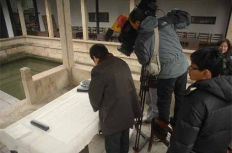 12月15日至16日,蘭亭景區(qū)接待了中央電視臺(tái)的攝制組。據(jù)導(dǎo)演介紹,他們在為臺(tái)北故宮博物院拍攝專題,專門介紹臺(tái)北故宮的100件珍貴藏品,其中有一件與蘭亭有關(guān),是定武本《蘭亭序》真跡。為此,攝制組不遠(yuǎn)千里,追蹤到了紹興蘭亭。拍攝主要從《蘭亭序》的產(chǎn)生和《蘭亭序》在中國書法史上的地位這兩個(gè)角度切入,攝制組表現(xiàn)出了非常認(rèn)真、嚴(yán)謹(jǐn)、專業(yè)、敬業(yè)的工作態(tài)度,即使一個(gè)靜態(tài)的鏡頭也要反復(fù)選擇、錄制、比較,力求盡善盡美。在拍攝過程中,蘭亭景區(qū)副主任、知名書法家喻革良和景區(qū)多位工作人員也協(xié)助和參與其中,喻革良老師為了拍好梁武帝評(píng)價(jià)王羲之書法 “龍?zhí)扉T、虎臥鳳闋” 這八個(gè)字,就反復(fù)書寫了很多張。拍攝完畢時(shí),他把最滿意的一張作品蓋上章送給了攝制組,讓導(dǎo)演異常興奮,一直感嘆不虛此行,并表示要把作品掛在工作室里,讓大家記住蘭亭之行。