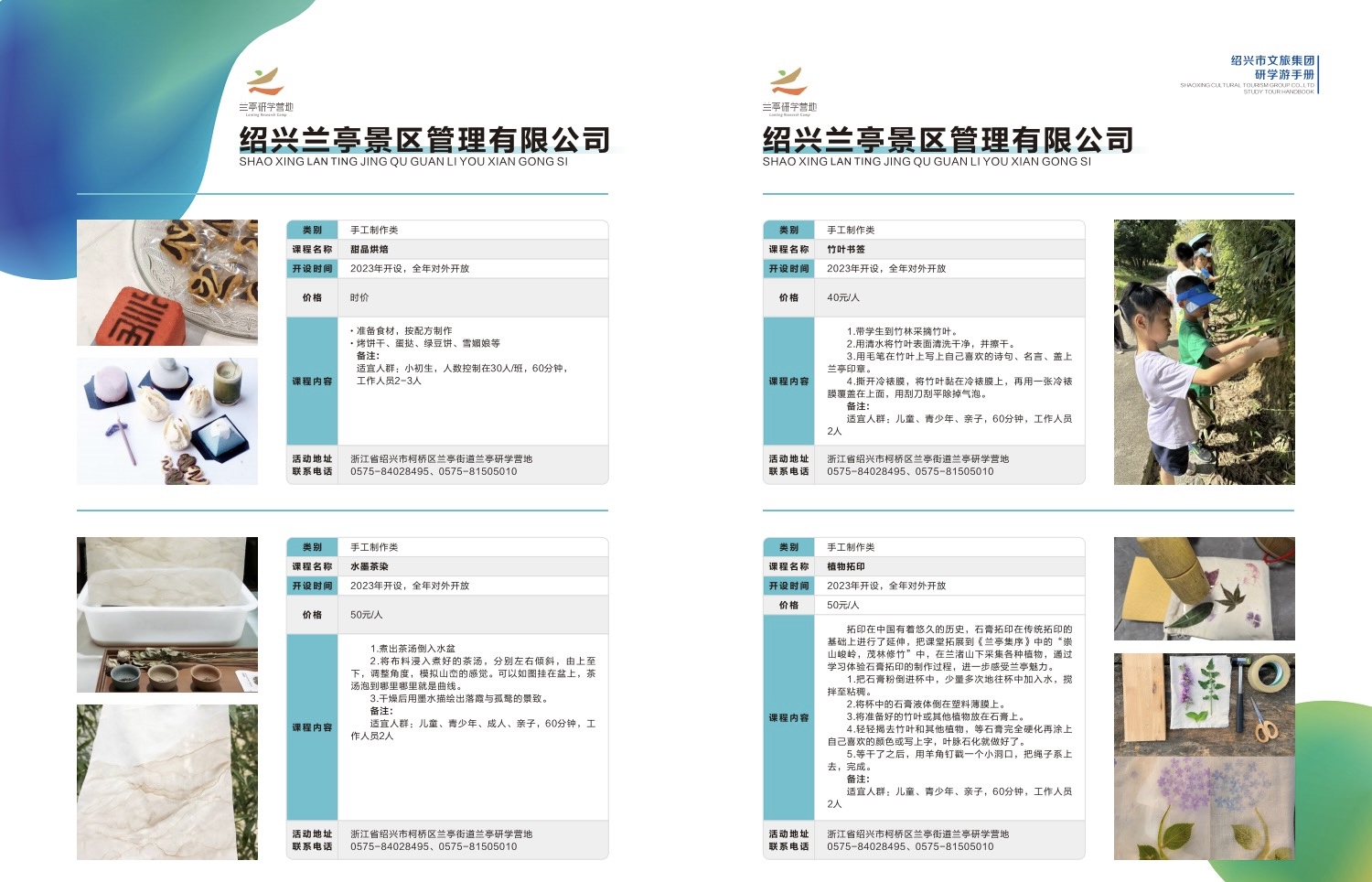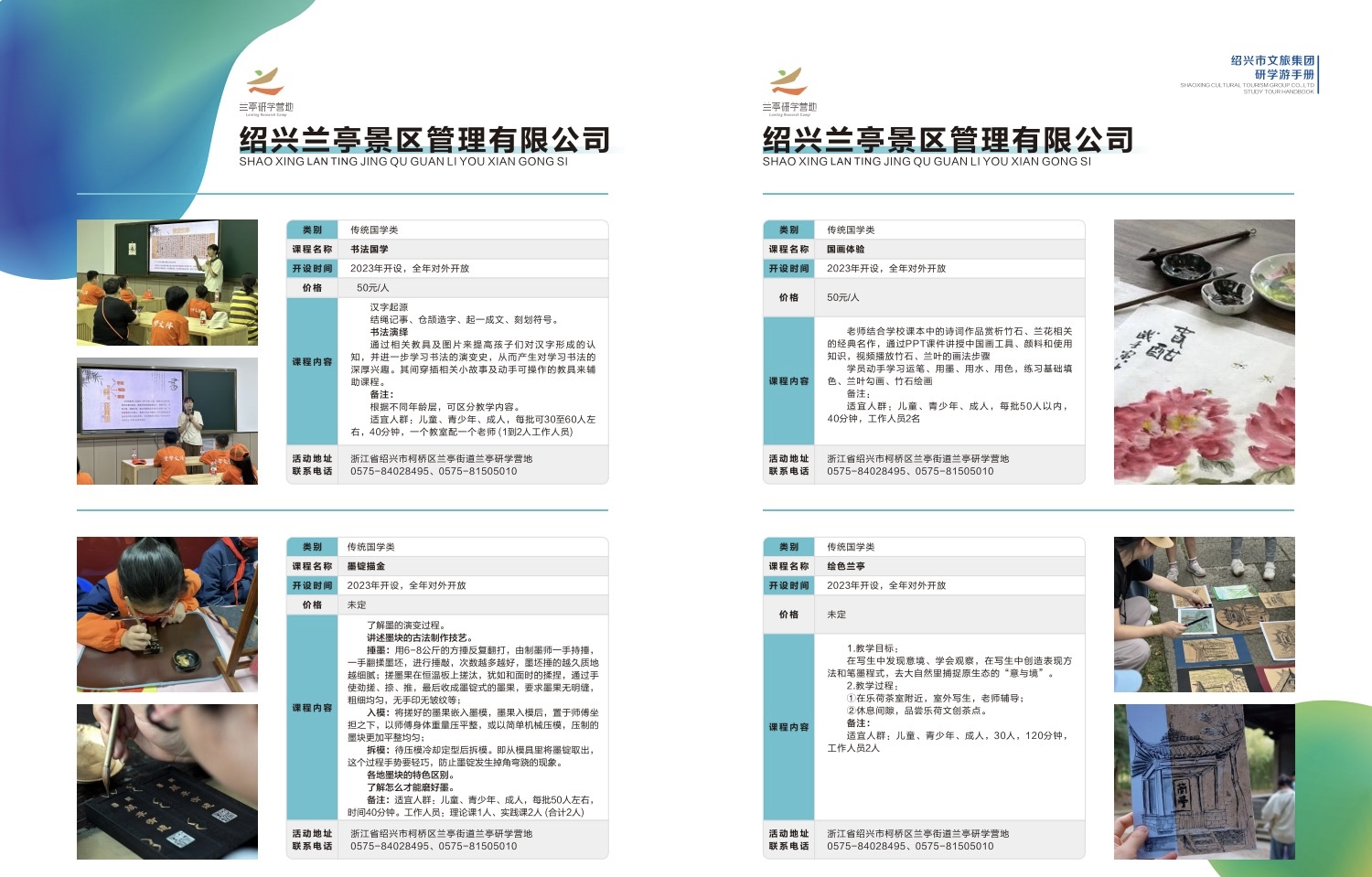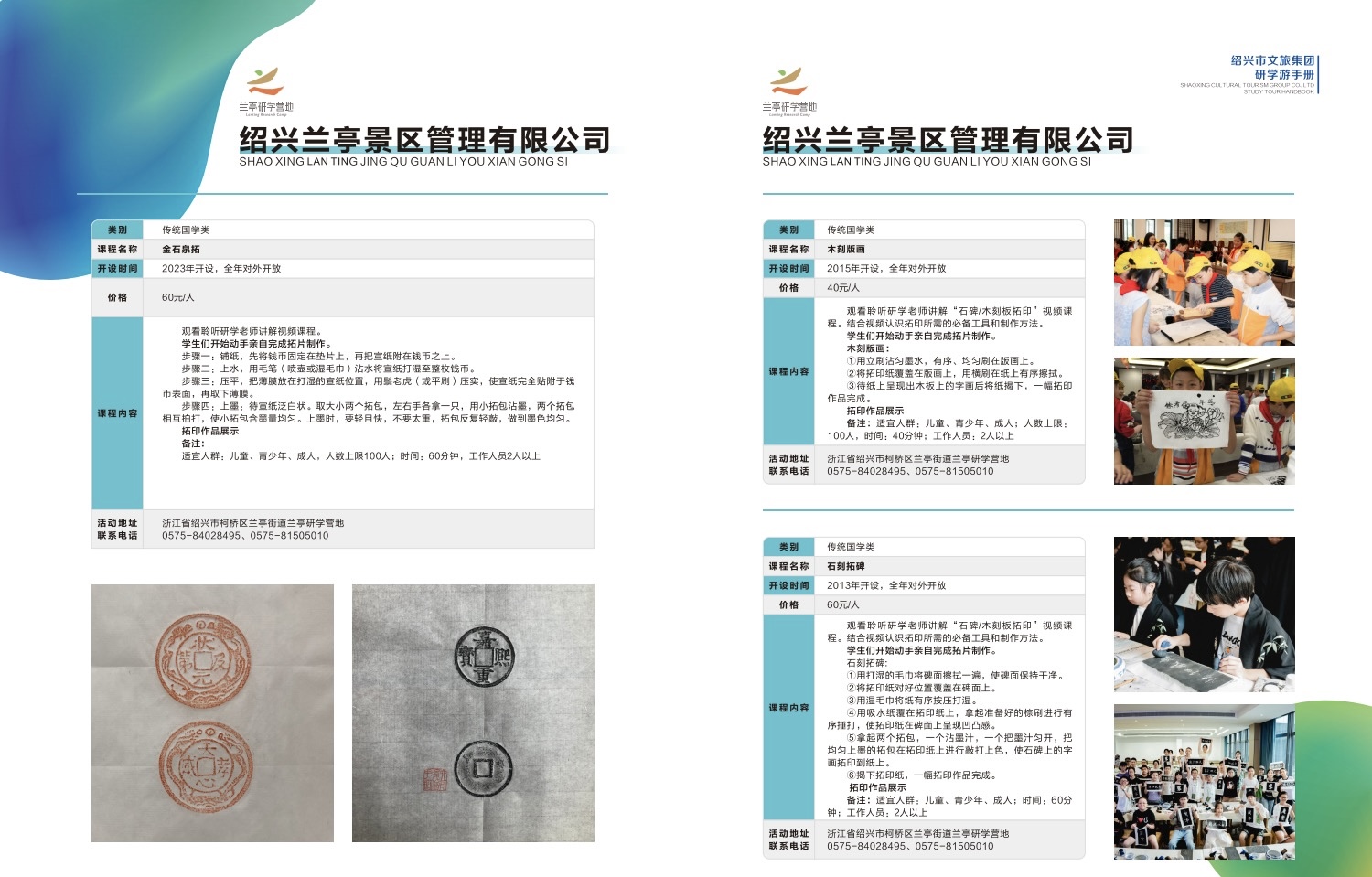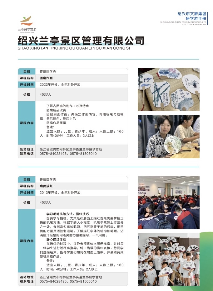 ì1+X模式,1為參觀景區(qū),X為自選課程,其中扇面描紅、石刻拓碑、曲水流觴、活字印刷、木刻版畫、臨摹蘭亭序、手工課堂成為最受學(xué)生歡迎的主題課程。