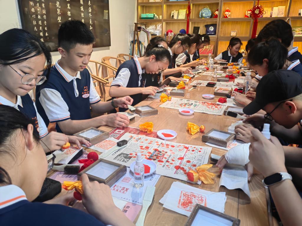 非遺“讀書擊劍”拓片—“讀書擊劍”這枚印章是秋瑾生前常佩帶身上的心愛之物,秋瑾在擔(dān)任大通學(xué)堂督辦期間,用這枚印章作為對(duì)外聯(lián)系的印鑒。讓這一非遺拓片的印章,感受跨越千年的技藝,通過親手拓制更深刻了解到一磚一瓦,沉淀了歲月的綿長;一紙一墨,記錄了歷史的榮光。